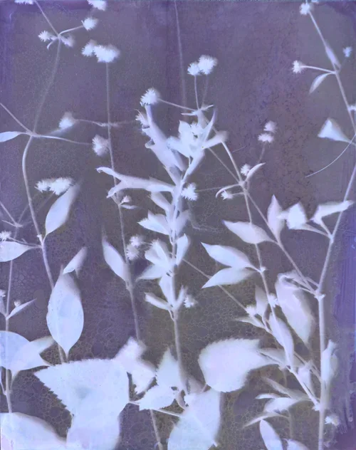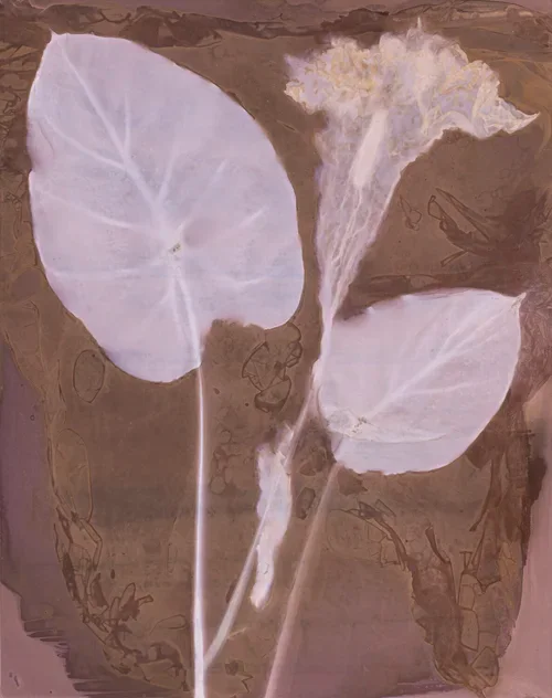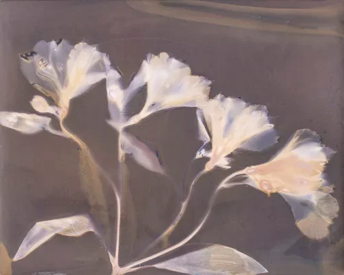 I place flowers, leaves, and stems on expired silver gelatin paper. I leave them to air, light, and chemistry. I do not look for the image; I wait for it.