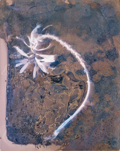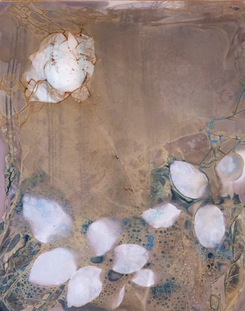 Traces emerge—veiled, unstable, incomplete—closer to memory than to naming. Each print takes its own time to change; and when it finally happens, the paper keeps a residue.